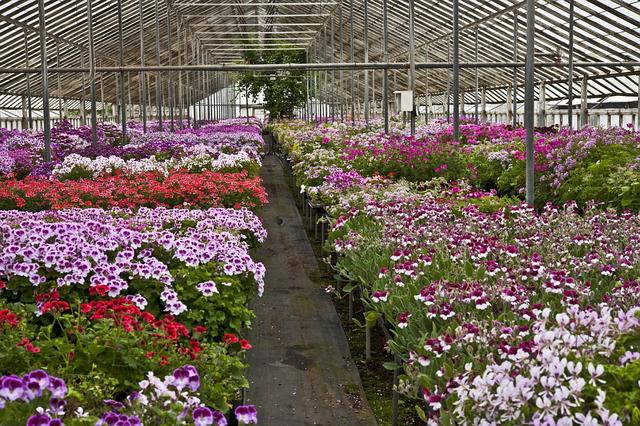 Some of you might wonder where we grow the pelargoniums. They live in a 10,000 sq. ft. cold greenhouse close to San Francisco Bay. The climate is mild, although we get a small amount of cold damage if the temperatures fall much below freezing. Because the greenhouse is made of glass it can get very hot in the summer. Fortunately pelargoniums don't mind heat, although we need to water them more frequently.